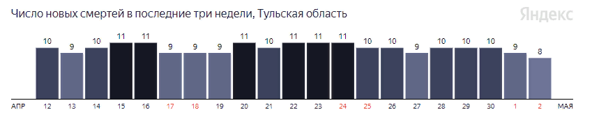 В Тульской области за прошедшие сутки от коронавирусной инфекции погибло еще 8 человек. С начала пандемии этого вируса в регионе зафиксировано 1867 летальных исходов.