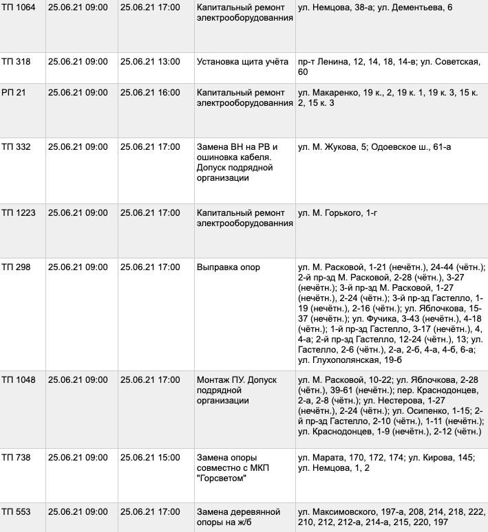 Отключения света планируются в течение рабочего дня в зависимости от места проведения ремонта. По большей части, дома будут обесточены с 9 до 17 часов.