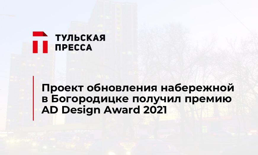 Проект реконструкции Богородицкой набережной получил премию AD Design Award 2021 в номинации «Городская среда». Об этом на своей странице в социальных сетях сообщила основатель дизайн-бюро «Геометрия» Ирина Глик.