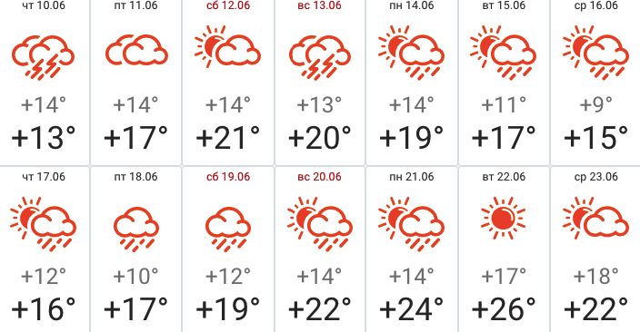 Рассчитывать на скорое улучшение погоды не приходится — период грозовой активности затянется по меньшей мере до начала следующей недели. Так, ближайший сухой день в Туле — 22 июня.