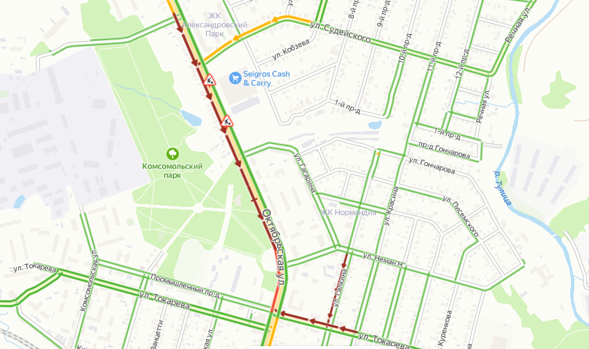В Туле на улице Октябрьской образовалась большая пробка. Как сообщают очевидцы машины «застряли» на участке из-за ремонта дороги. Сейчас движение затруднено.