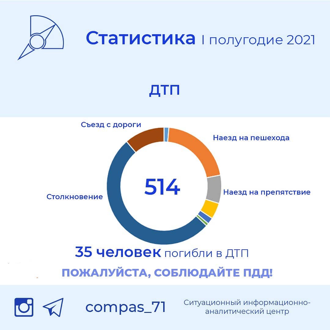 Всего с начала года в Туле произошло 514 ДТП. В них погибли 35 человек. Самым распространенным типом аварии стало столкновение автомобилей. На втором месте — наезд на пешехода. Чуть реже происходят ДТП со съездом с дороги и наездом на препятствия.