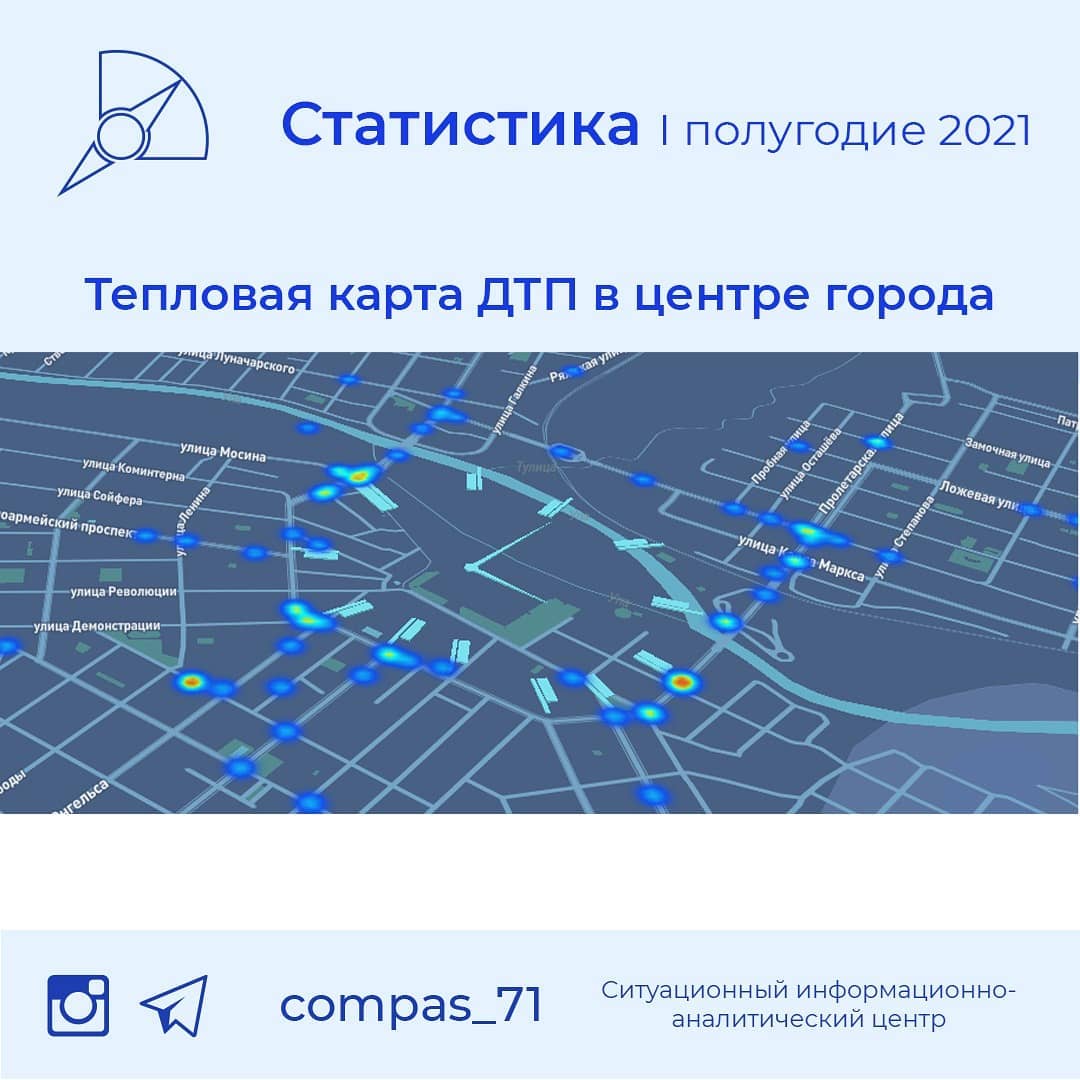 По итогам первых пяти месяцев 2021 года самым аварийным участком в Туле стала улица Советская. Об этом говорит тепловая карта ДТП, предоставленная аналитиками.