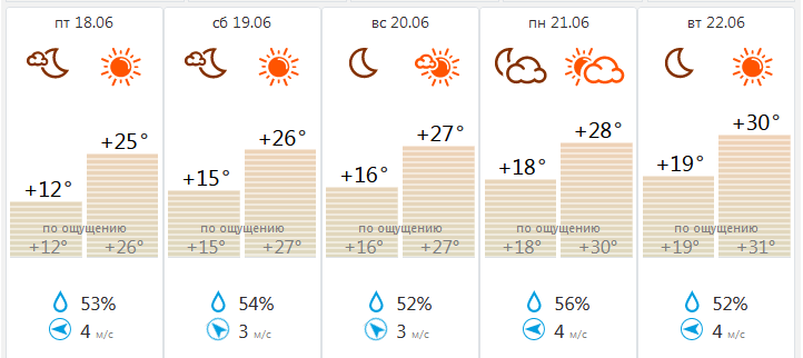 На территории Центральной России в эти выходные и на протяжении следующей недели ожидается аномально теплая погода. По прогнозам «Фобоса» температура воздуха достигнет +33…+35°С.