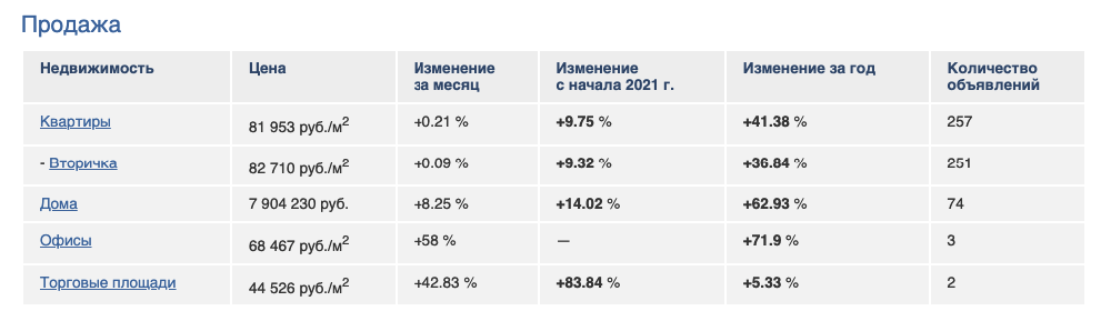 Однако сильнее всего в Туле подорожали дома и офисы. Так, средняя цена дома — 7 904 230 рублей (+62,93% за год), офиса — 68 467 рублей за кв. метр (+71,9% за год). Незначительнее всего изменилась стоимость торговых площадей — 44 526 рублей за кв. метр (+5,33%).
