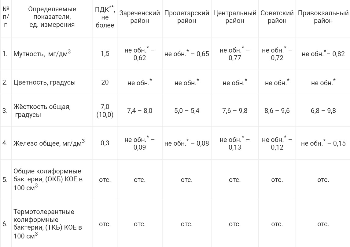 АО «Тулагорводоканал» опубликовало результаты исследований питьевой воды в разных районах города. Измерения проводились с 21 по 27 июня 2021 года.