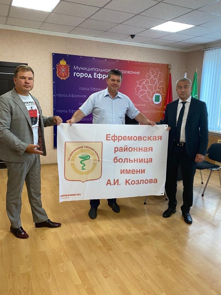 Член Общественной палаты Тульской области Игорь Крюков в составе экспедиции Федора Конюхова отправился на Северный полюс. Там, среди снега и льдов, он развернул флаг Ефремова. 9 августа общественник передал его главе городской администрации Сергею Балтабаеву.