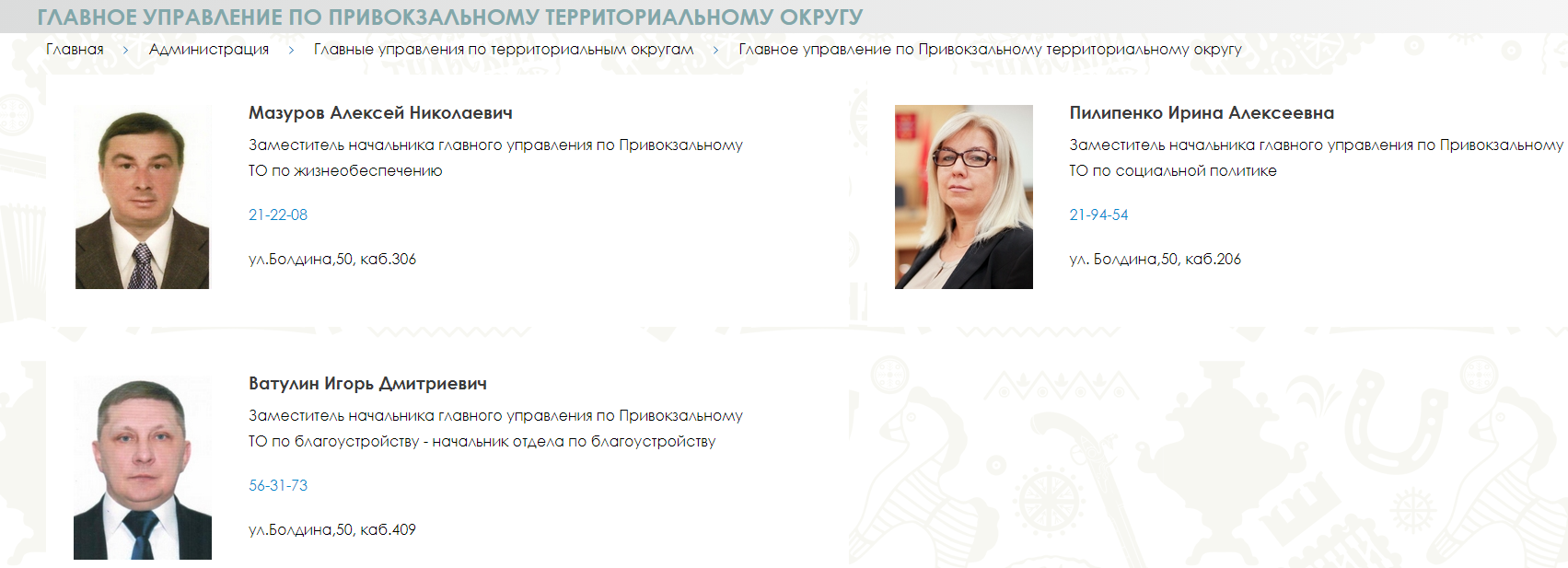 Информации о том, кто сейчас возглавляет управления по Привокзальному территориальному округу Тулы, на сайте городской администрации пока нет.