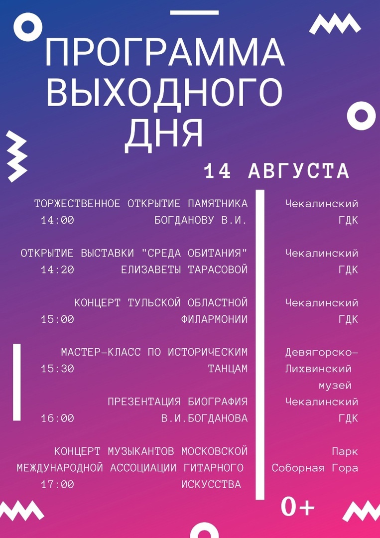 14 августа в самом маленьком городе России — Чекалине состоится несколько культурных мероприятий, подготовленных при поддержке Фонда Президентских грантов, Фонда развития малых исторических городов и министерства культуры Тульской области.