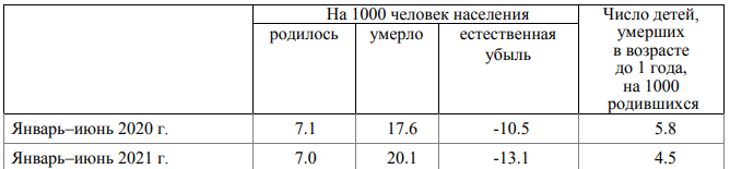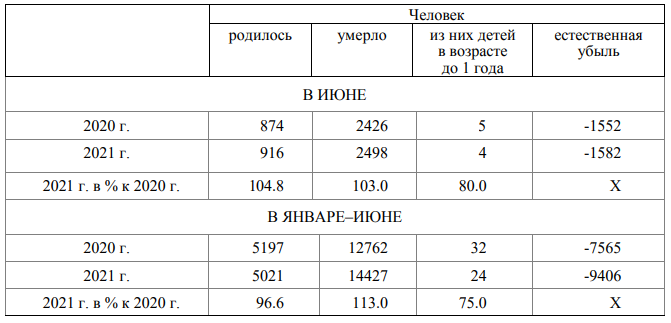 «По сравнению с соответствующим периодом 2020 года число родившихся сократилось на 176 человек (на 3,4%), число умерших увеличилось на 1 665 человек (на 13%)», — сообщили в Туластате.