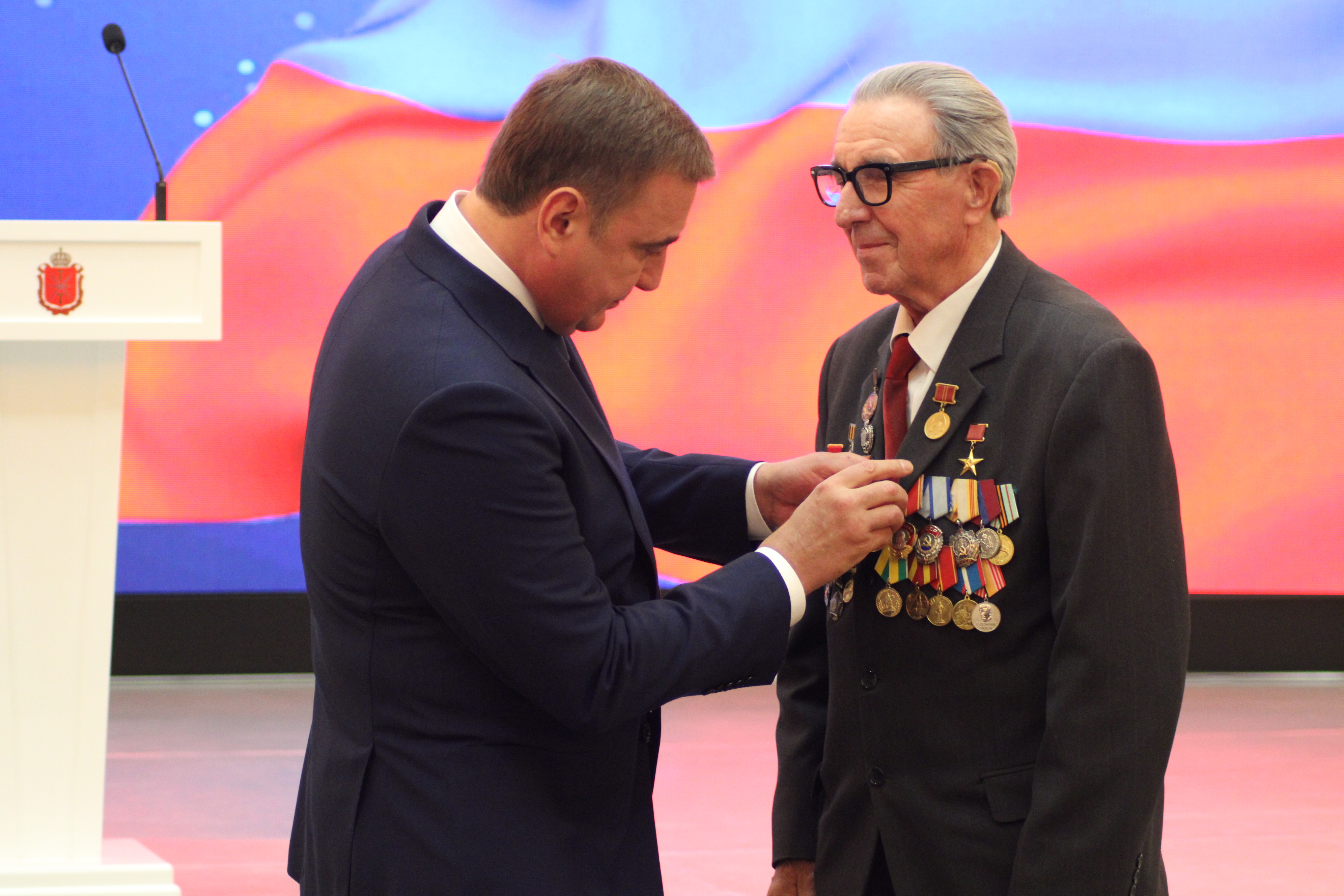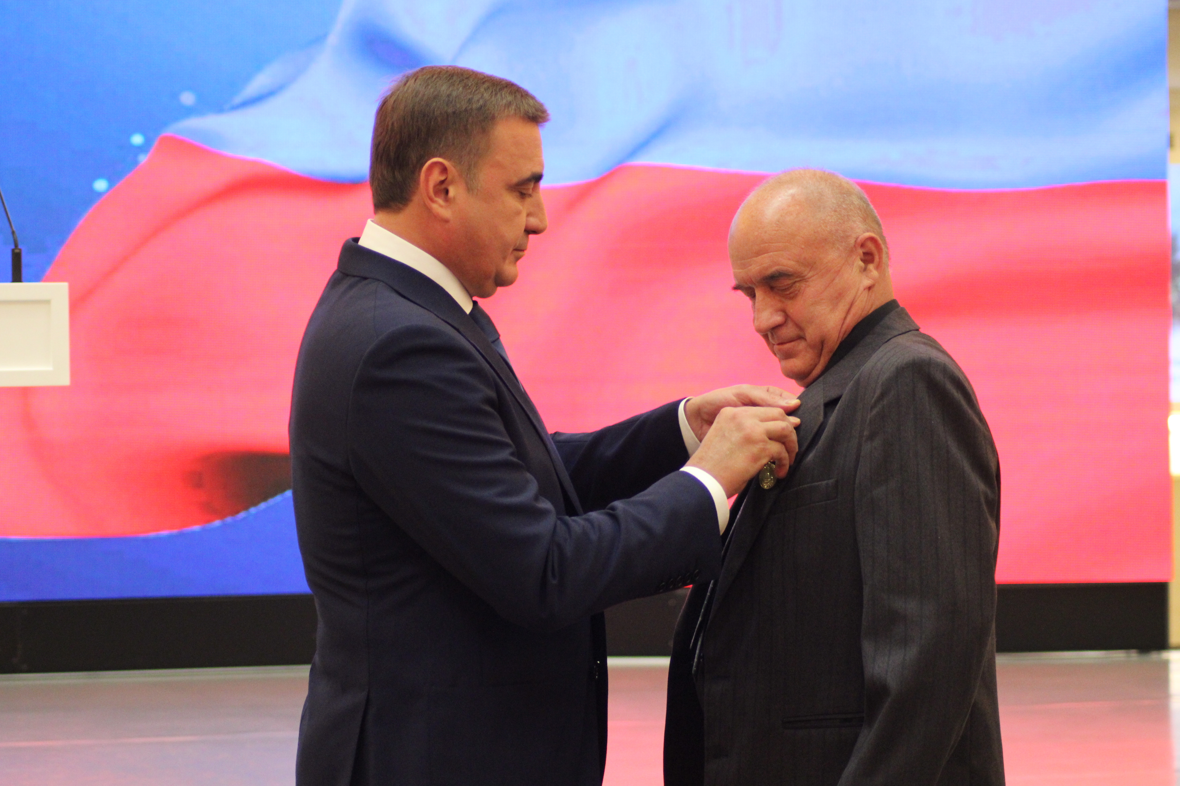 Глава Тульской области торжественно вручил ветеранам и работникам оборонных предприятий государственные и региональные награды. Всего на торжественном праздновании был награжден 21 оружейник.