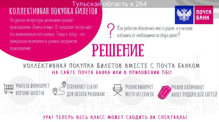 - Учитель заходит в приложение «Почта Банк онлайн» и выбирает мероприятие из афиши.