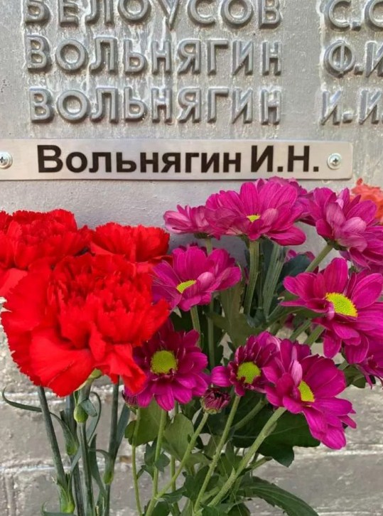 Ее внучка Дарья Бармашова, правнучка погибшего бойца, рассказала: «Моя бабушка приходится Николаю Ивановичу Вольнягину дочерью. Родилась она 21 июня 1941 года, ушедшего на фронт отца никогда в своей жизни не видела. На старом памятнике фамилия прадедушки была, но при реконструкции ее указать забыли. Бабушка очень переживала по этому поводу».
