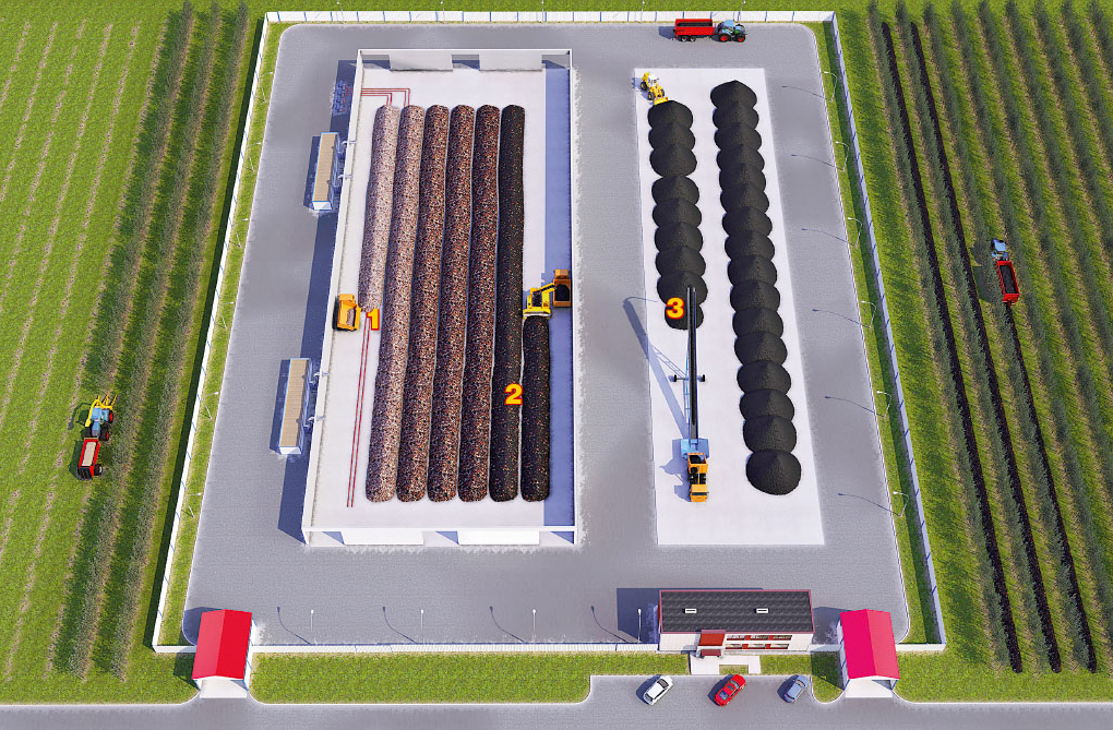 Чтобы превратиться в ценный продукт, помет должен пройти процесс компостирования. Технология, прижившаяся в Европе, и активно осваиваемая в Московской области, пришла из Австрии. Помет собирают в бурты, перемешивают с добавками для поглощения лишней влаги — торфом, измельченной соломой, опилками — и складируют на забетонированной основе. К сырью добавляют термофильные молочнокислые бактерии, а сельскохозяйственные машины-ворошители «Компостер» регулярно перемешивают бурт, чтобы обеспечить условия, необходимые для правильного течения реакции. Термофильные молочнокислые бактерии питаются субстратом и размножаются в нем, в результате их жизнедеятельности температура сырья достигает + 70° С . Помимо этого, микроорганизмы выделяют вещества, нейтрализующие аммиак.
