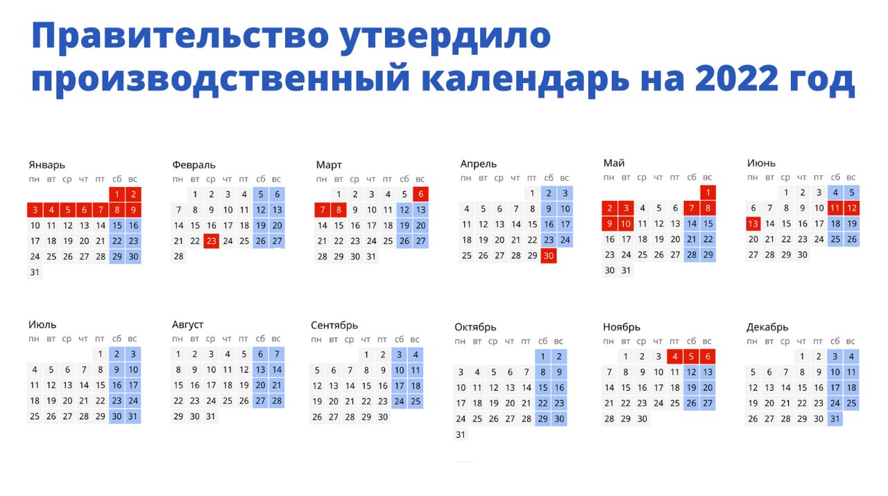 Правительством России утвержден календарь праздничных и выходных дней в 2022 году. Он был опубликован в пятницу в официальном Telegram-канале кабмина.