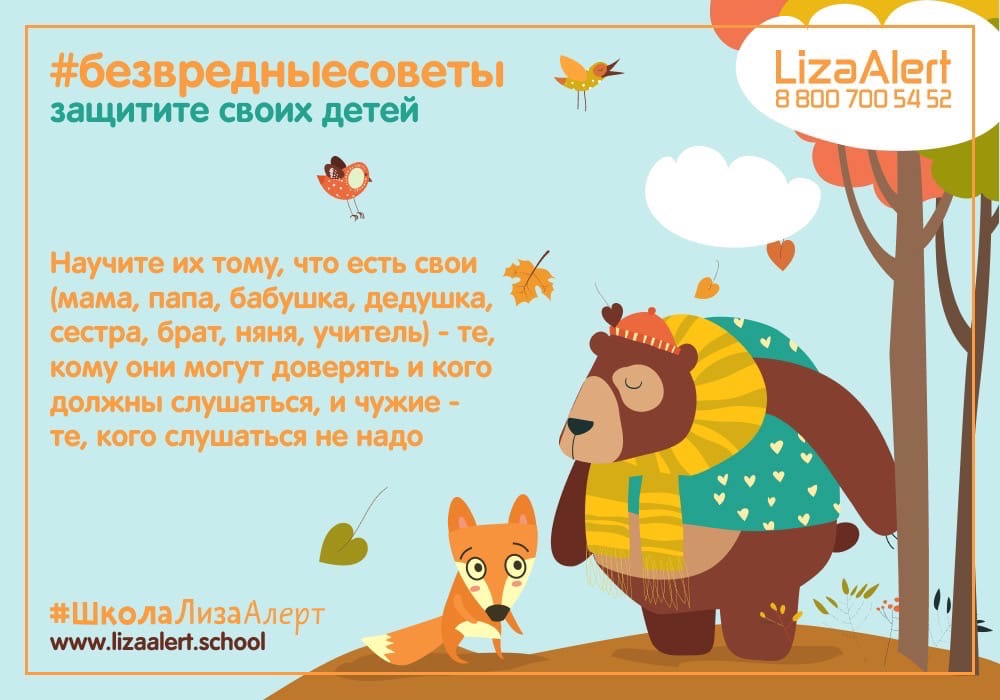 Расскажите своему ребенку, что если взрослый просит помощи – это тревожный знак. Взрослый попросит о помощи только взрослого, потому что только взрослый может эффективно ему помочь.