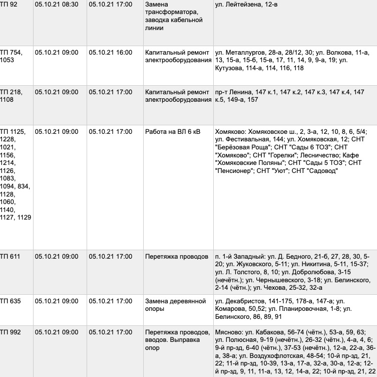 5 октября часть Тулы останется без света