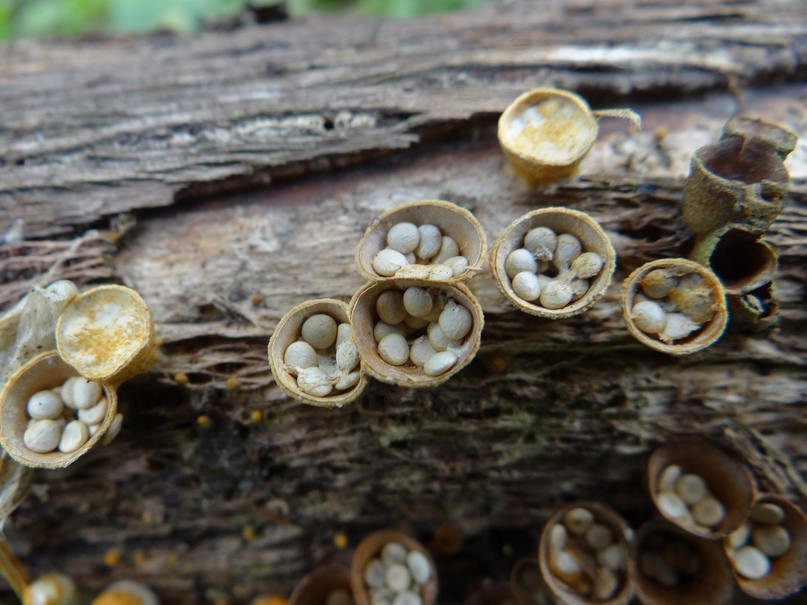 На гниющих ветках хвойных деревьев растет Бокальчик гладкий. Грибы похожи на маленькие гнезда птиц. Бокальчик относят к семейству Шампиньоновых, что делает их близкими родственниками.