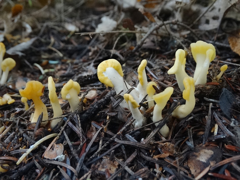 Один из таких грибов — Спатулярия желтоватая. Он растет в хвойных лесах, а его очертания напоминают небольшое дерево. Гриб можно встретить во второй половине лета и начале осени.