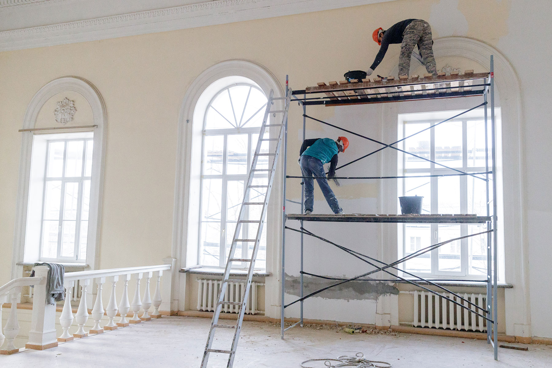 Подрядная организация уже завершила демонтажные работы. Сейчас в здании ведется монтаж инженерных сетей, отделка фасада и установка окон, также рабочие приступили к черновой внутренней отделке. В холодное время года, то есть зимой, работы будут вестись внутри.