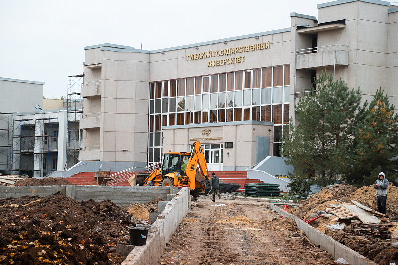 Параллельно с работами по обустройству сквера Тульский государственный университет ремонтирует фасад спортивного корпуса. «Чтобы не возникало диссонанса между обликом сквера и зданием», — отметил Дмитрий Миляев.