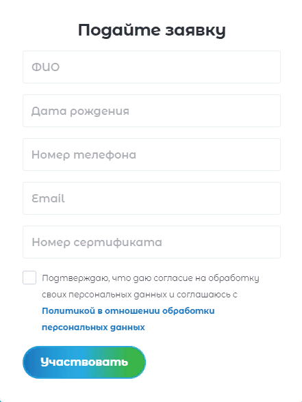 Если вы прошли ревакцинацию, для участия в конкурсе не нужно обновлять данные, необходимо лишь ввести номер действующего сертификата. Зарегистрироваться можно только один раз. После введения данных, нужно согласиться с обработкой персональных данных, поставив галочку в соответствующем окошке и нажать на кнопку «Участвовать». С 1 ноября ваши данные будут приняты к участию в конкурсе. К участию в конкурсе допускаются только заявки, поданные лично: вы не можете принять участие за своих родственников или знакомых. После подачи заявки никаких данных больше вводить не нужно.