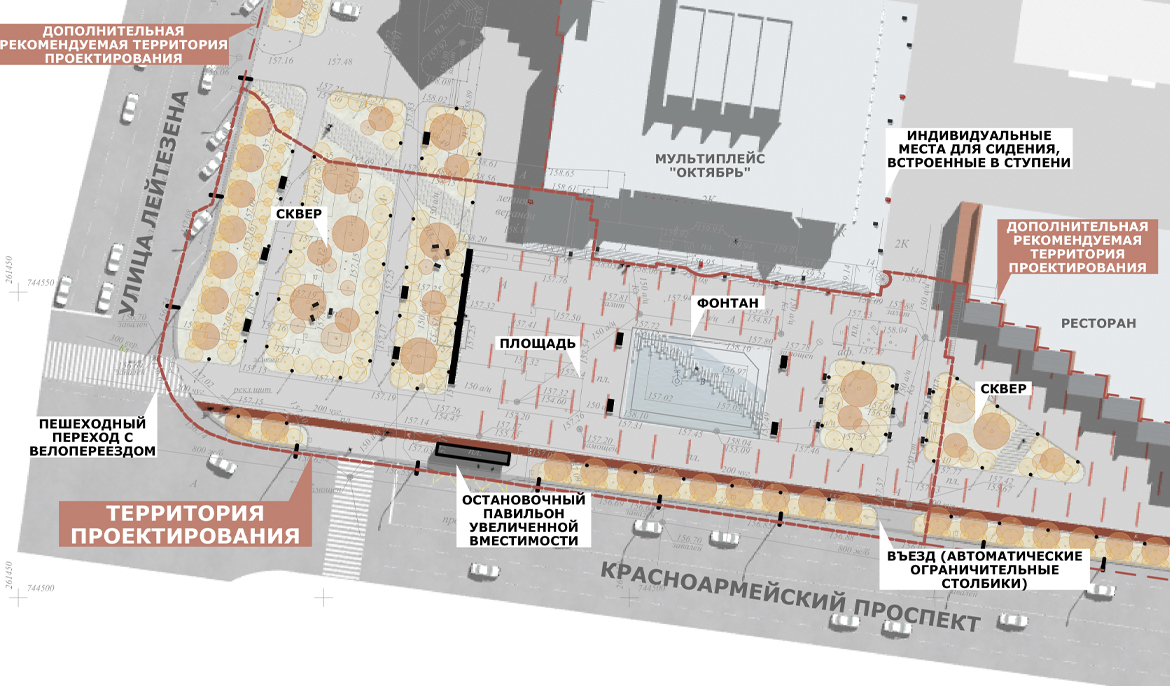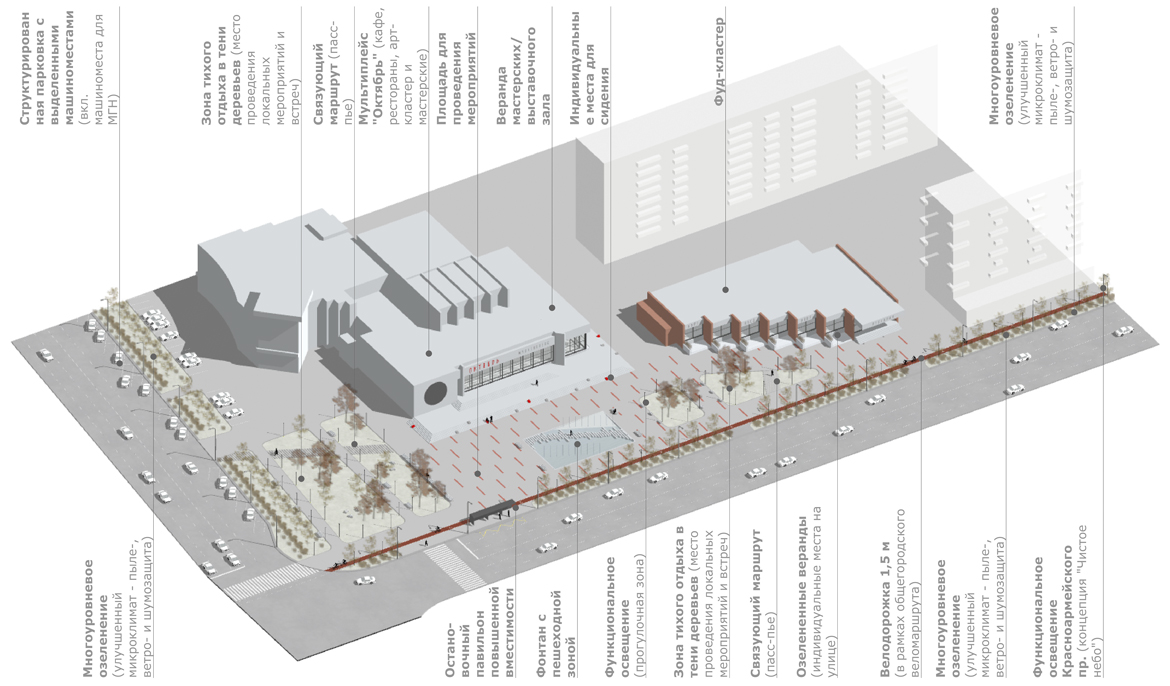 «Мультиплейс «Октябрь» и прилегающая к нему территория станут не только новыми любимыми местами горожан, но и единственными крупными общественными пространствами Красноармейского проспекта — второй по значимости артерии Тулы», — говорится в описании проекта.