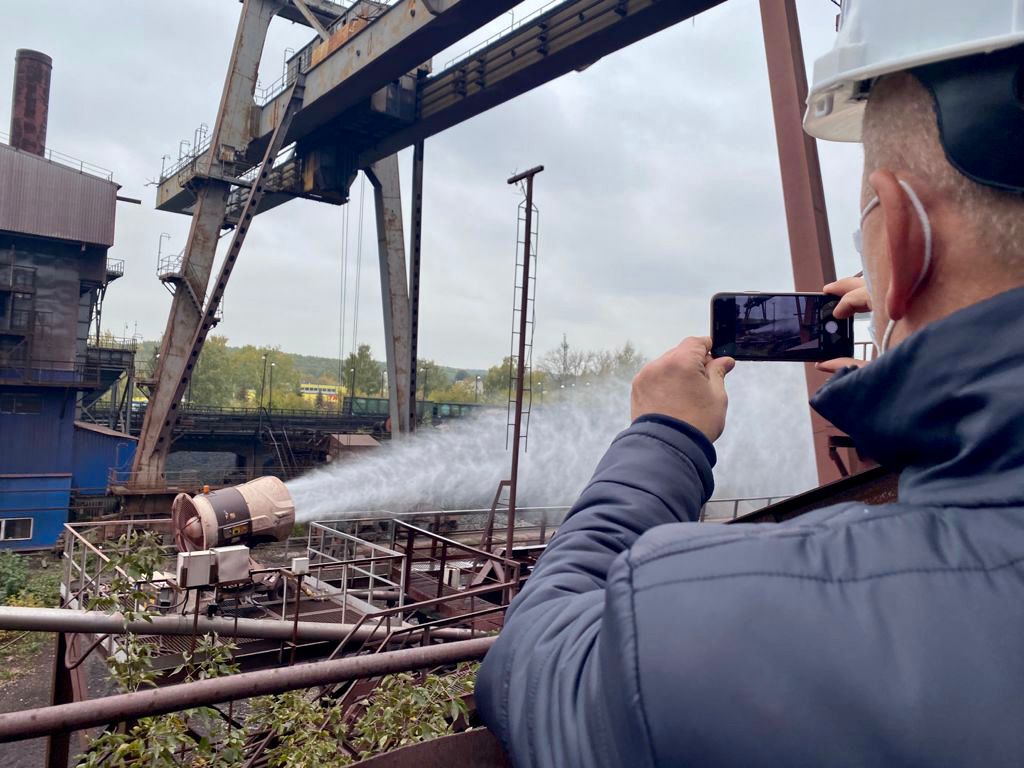 Одна из причин появления разноцветных облаков — повышенное выделение мелкодисперсной железосодержащей пыли при выгрузке из вагонов и последующих перегрузках неофлюсованных окатышей. Для решения проблемы на рудном дворе КМЗ вдоль фронта выгрузки пылящих материалов установили система пылеподавления. Эта мера и новый туманогенератор с функцией генерации снега должны минимизировать количество выбросов в воздух мелкодисперсной пыли.