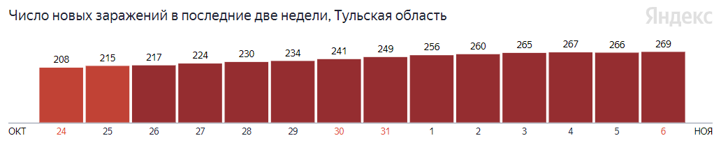 В Тульской области снова побит антирекорд по заболеваемости. За последние сутки были зарегистрированы 269 случаев заражения коронавирусной инфекцией. Для тульского региона это максимум за все время пандемии.