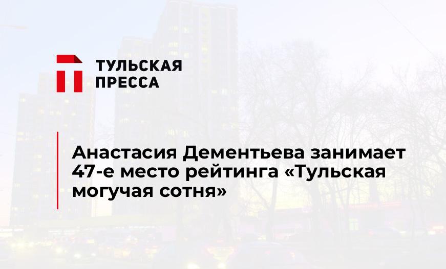 47-е место в рейтинге «Тульская могучая сотня» в 2021 году занимает заместитель председателя Тульской городской Думы, председатель общественного совета проекта «Народный контроль. ЖКХ», руководитель Центра общественного контроля ЖКХ региона Анастасия Дементьева.