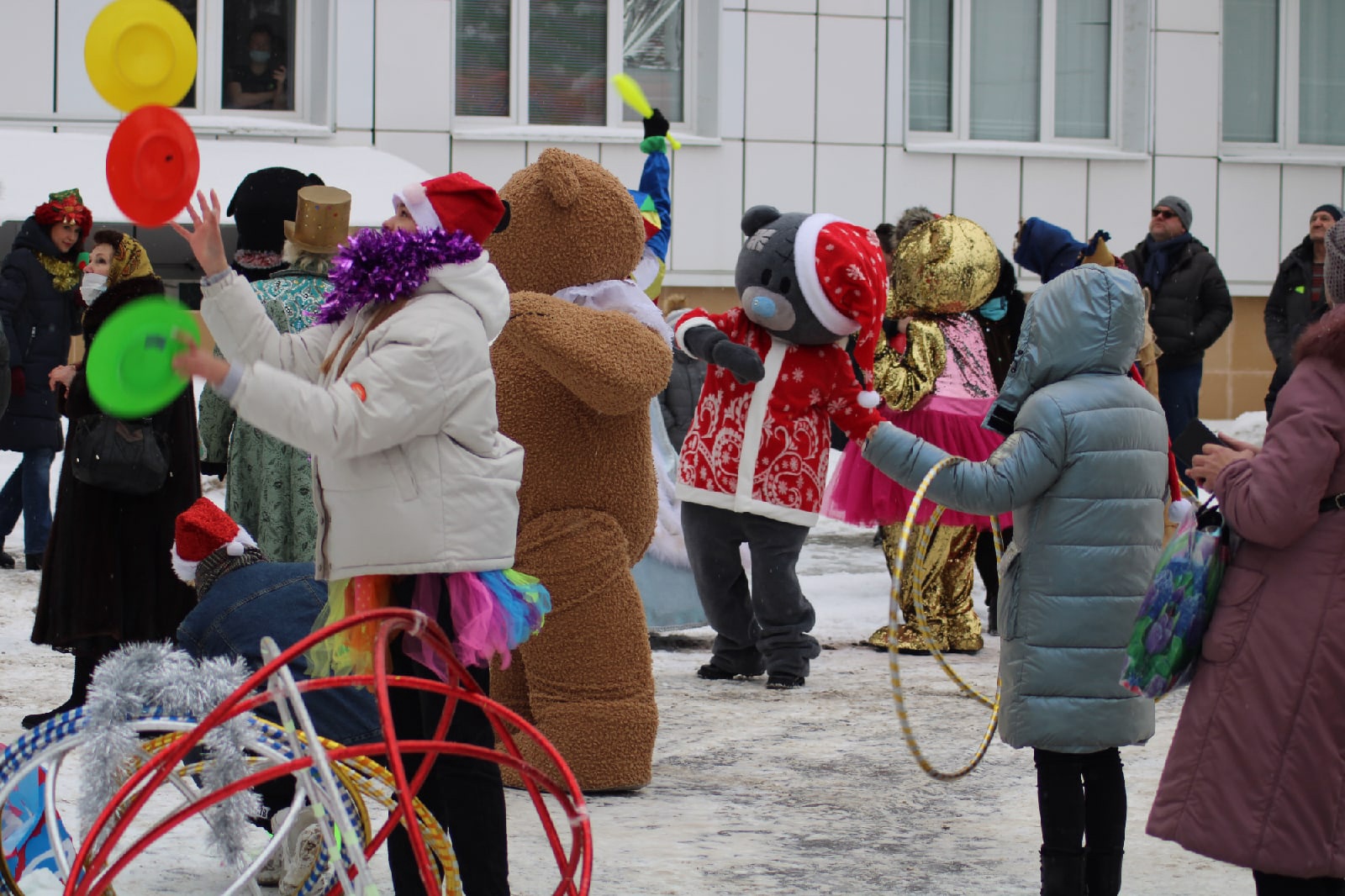 28 декабря в честь наступающего Нового года под окнами детской областной больницы развернулась настоящая сказка, в которой приняли участие артисты детской цирковой студии, Дед Мороз, Снегурочка и другие яркие персонажи.