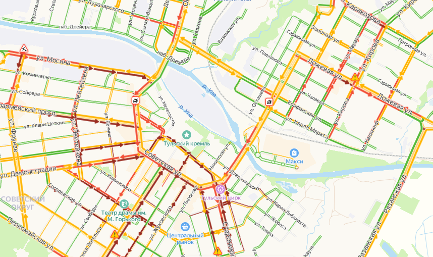 Отметим, что пробки на Советской образовались из-за ДТП. Некоторые заторы возникли из-за дорожных работ на участках.