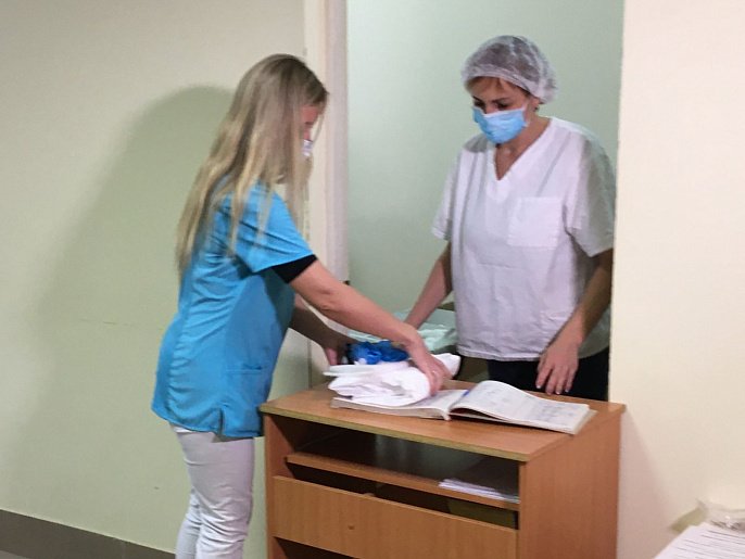 «За месяц совместной работы у нас сложился дружный коллектив, работаем четко и слаженно, это отмечают и наши пациенты», — сообщила замначальника инфекционного госпиталя Анастасия Блохина.