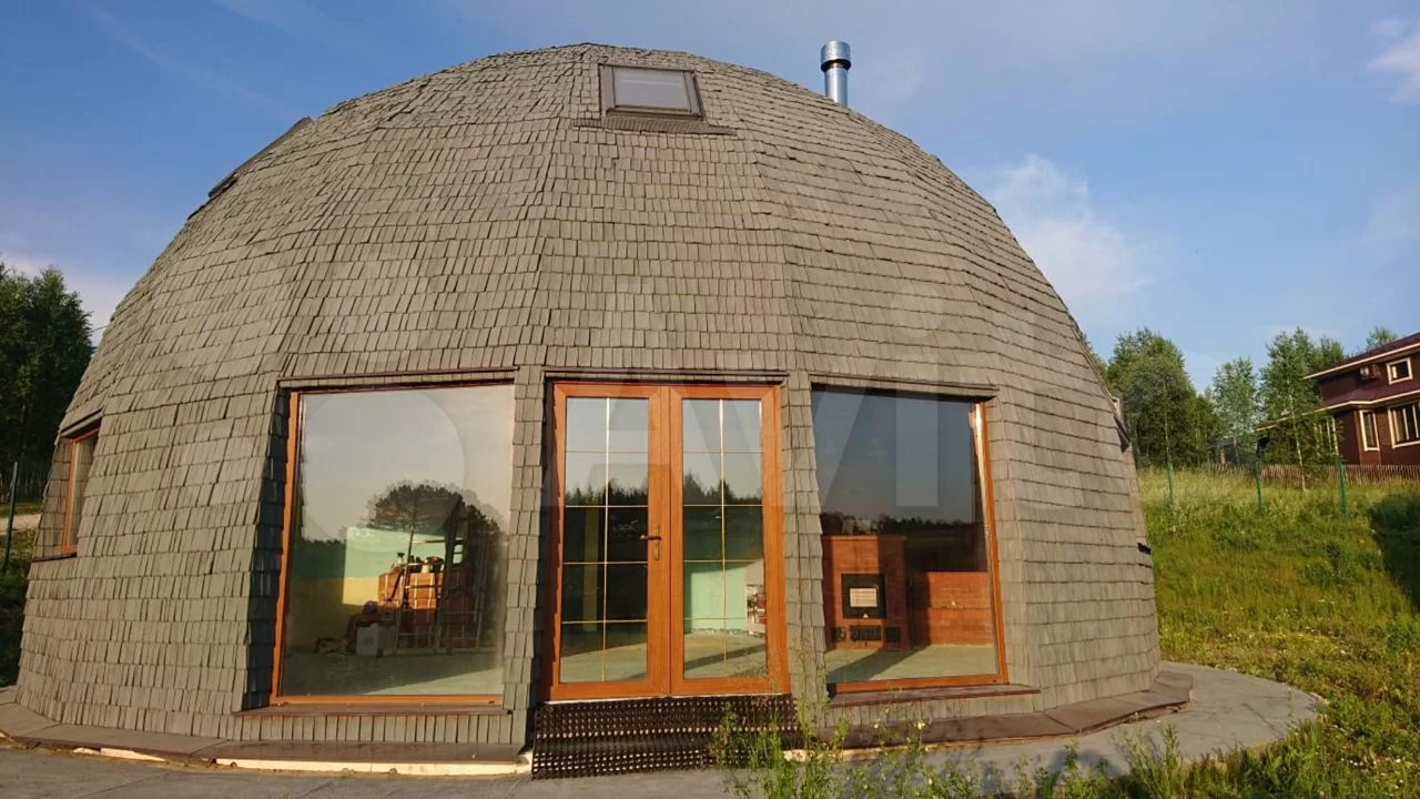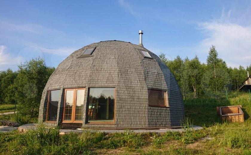 Коттедж также расположен в поселке Велегож-Парк Смарт. Площадь необычного дома в форме купола — 200 кв.м. Дома есть электричество и водопровод и кирпичная печь для отопления с лежанкой.