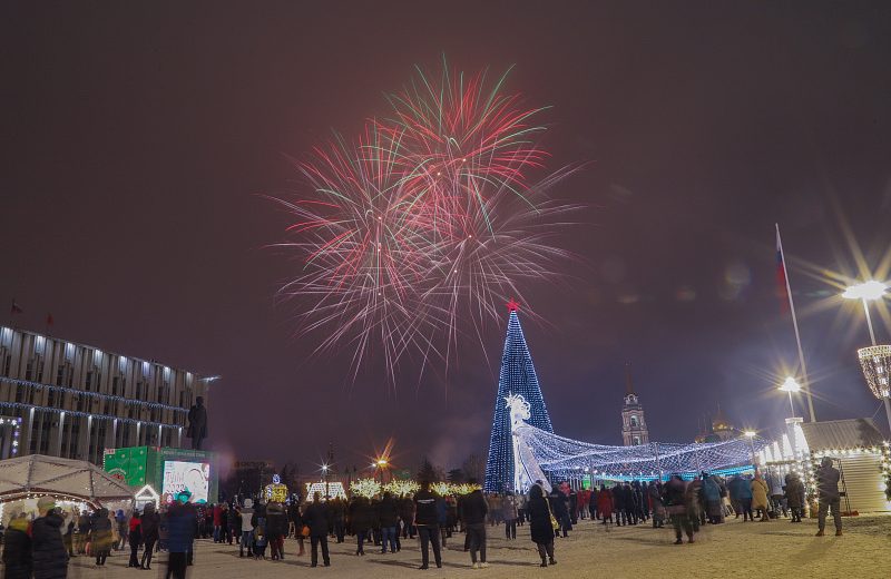 Вечером 31 декабря на площади Ленина в Туле началась праздничная новогодняя программа. Жители и гости оружейной столицы могли насладиться трансляцией концертов на больших экранах, посетить ярмарочные домики и покататься на аттракционах.