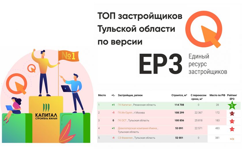 По итогам независимого портала ЕРЗ группа компаний «Капитал – строитель жилья!» заняла первое место в реестре застройщиков в городах Рязань и Тула, а также 28 – по России.