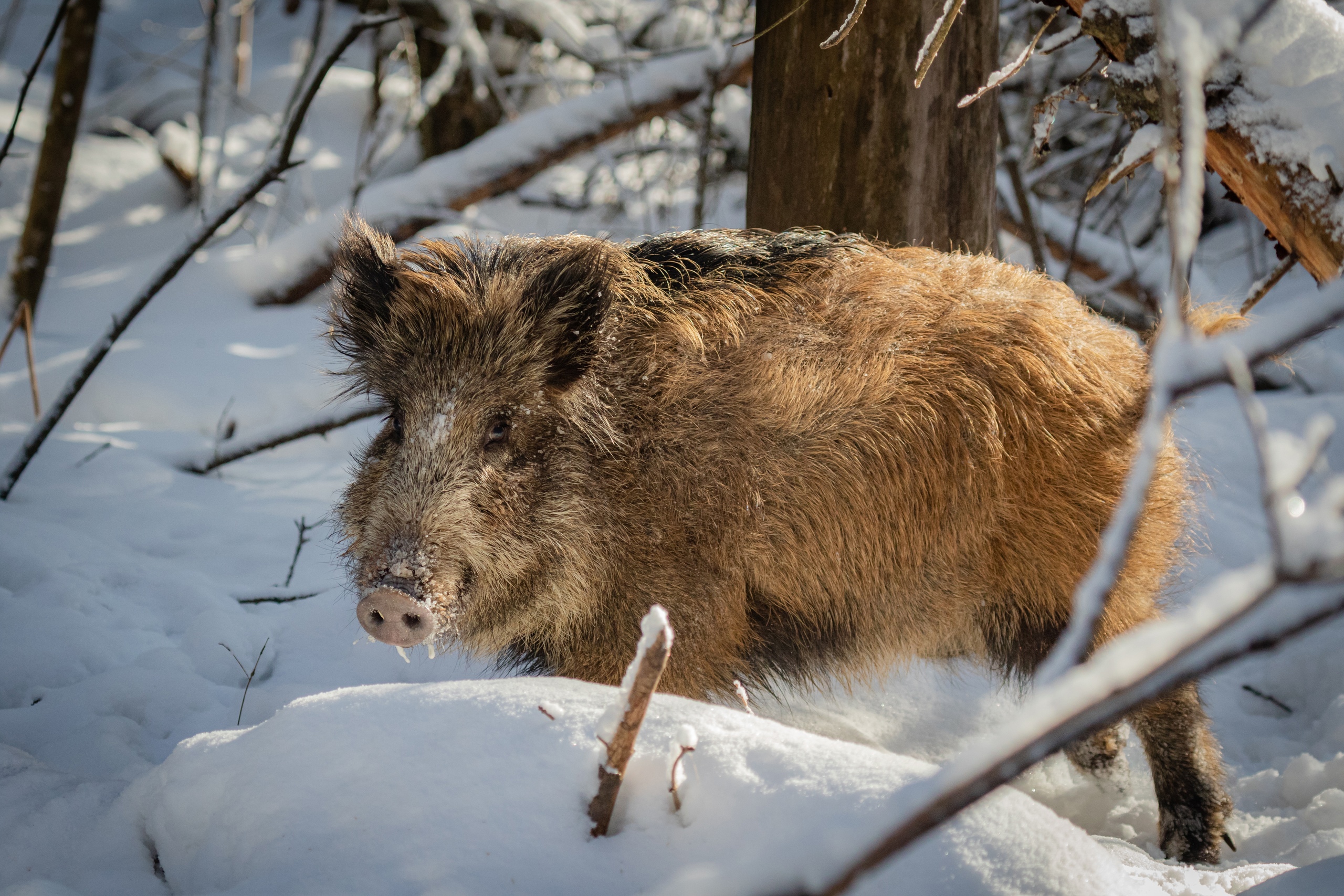 Бегают по тульским лесам и европейские кабаны. Их Михаил также сфотографировал. Средний вес кабана составляет 200 килограммов, но встречаются и крупные особи с массой тела около трех центнеров. У животного жесткая шерсть, недлинные ноги и небольшой хвост. Как правило, самцы горазд крупнее самок.