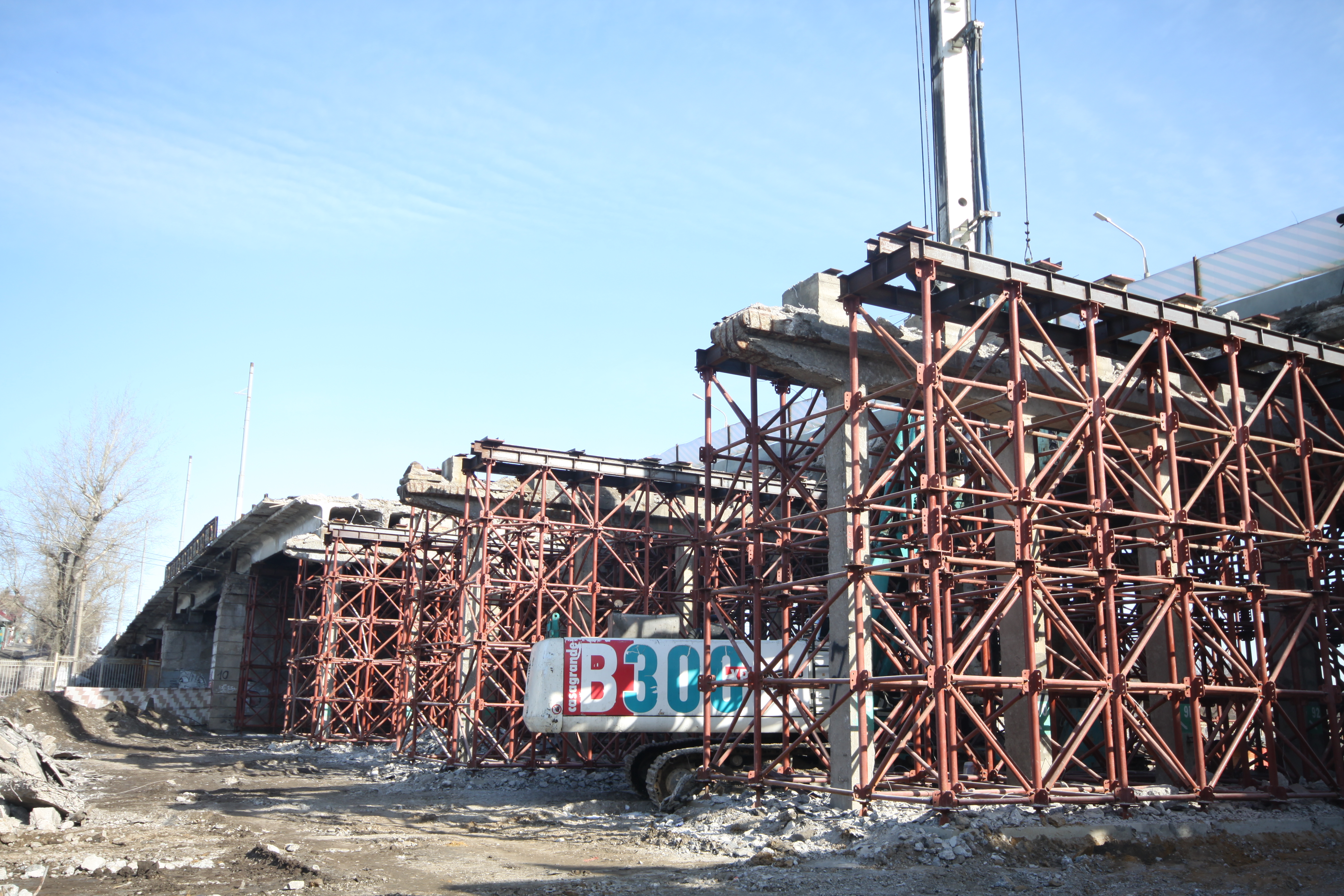 «Мы фактически организовали дорожное движение на свободном пространстве, установлено строительное ограждение, строительный городок. На текущий момент приступили к демонтажу дорожного полотна, ограждений безопасности, ведем работы по демонтажу строительных конструкций, также приступаем к бурению скважины для обустройства свай»