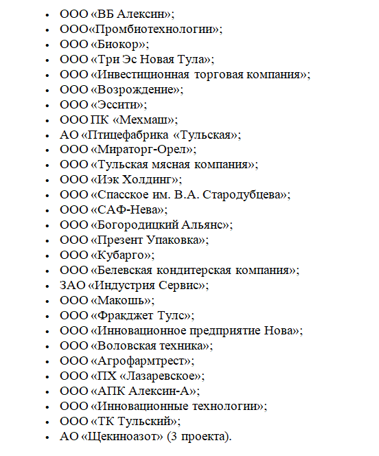 Компании, приостановившие реализацию инвестпроектов в Тульской области