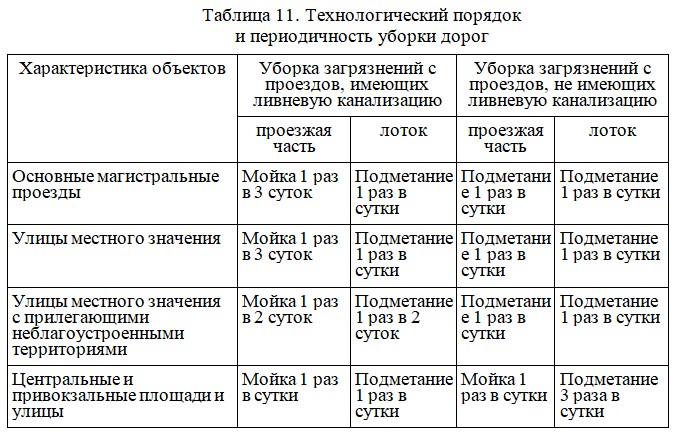 «Мойку производят только на проездах, имеющих усовершенствованные дорожные покрытия. Проезды, подлежащие мойке, должны иметь ливневую канализацию или уклоны, обеспечивающие хороший сток воды. Мойку производят в ночное время, исключение составляет мойка проездов после окончания дождей. Эту операцию осуществляют механизированным способом специализированные предприятия. На мойку должны быть составлены маршрутные графики. Копии маршрутных графиков с графическими схемами должны выдаваться водителю вместе с путевым листом.
