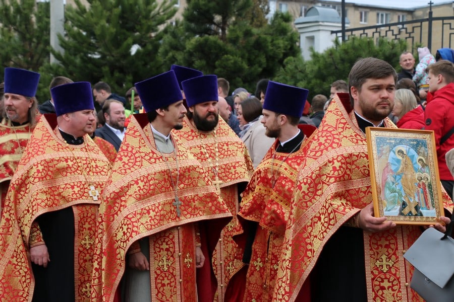 Сотни горожан собрались, чтобы принять участие в праздновании одного из главных христианских праздников. На обновленной площади состоялось праздничное богослужение – Великая Пасхальная Вечерня. После службы был роздан Благодатный огонь всем желающим.