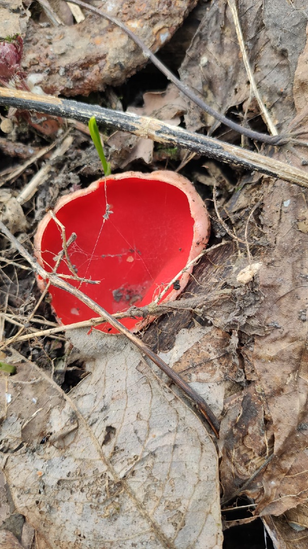 Некоторым грибникам удалось вместе со строчками захватить алую саркосцифу или эльфову чашу. Эти грибы, как правило, растут на разлагающихся стволах и ветвях деревьев, покрытых слоем листвы или почвы.