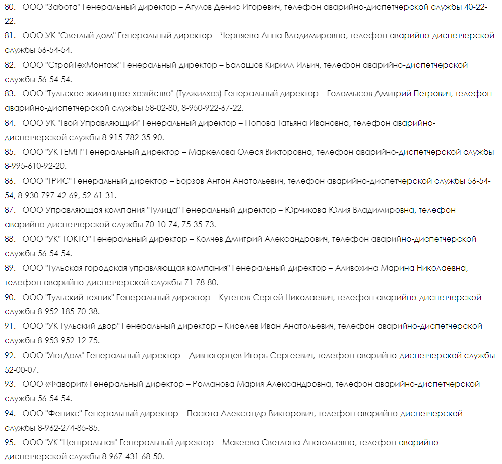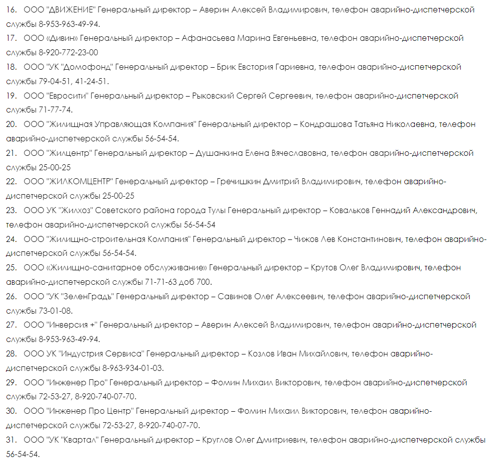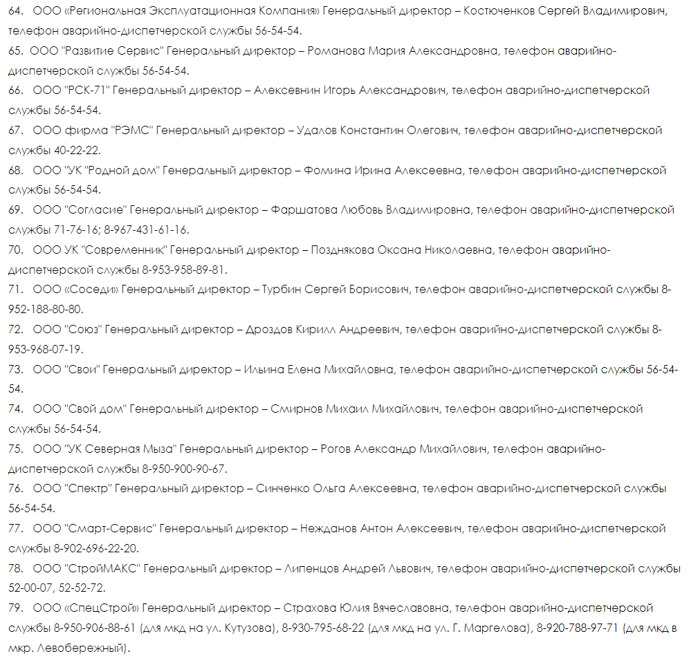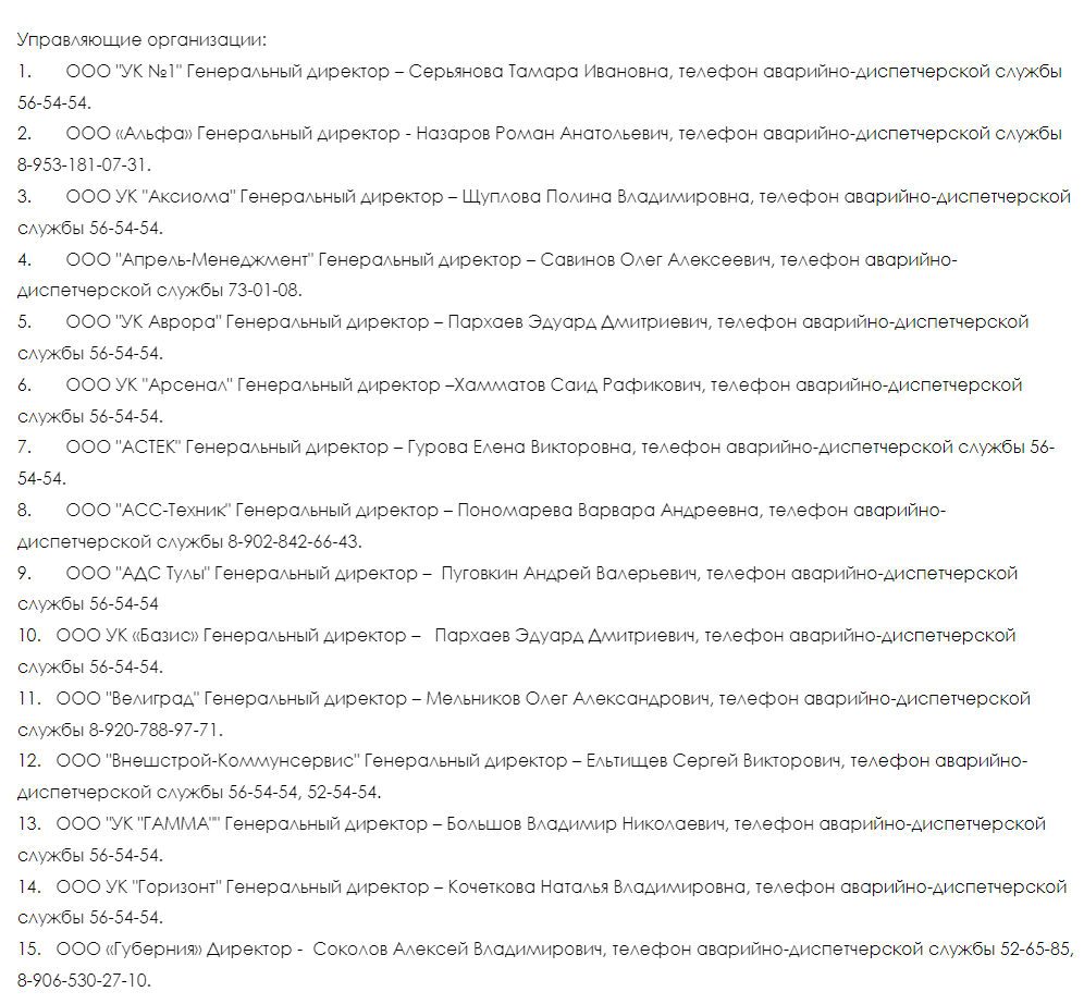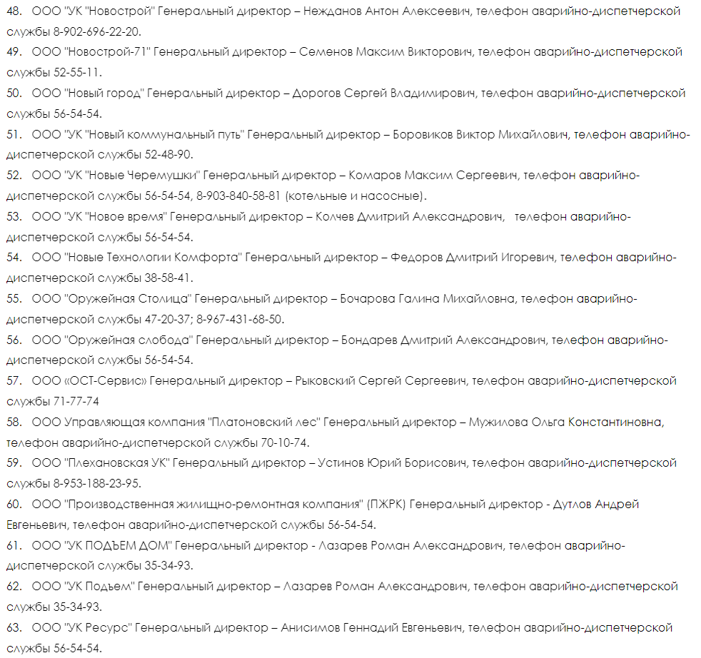 Также публикуем телефоны управляющих организаций, к которым можно обратиться по интересующим вопросам.