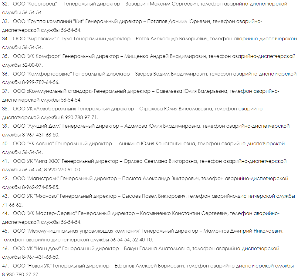 - АО «Тулагорводоканал» — 42-53-34//42-53-26//79-35-84;