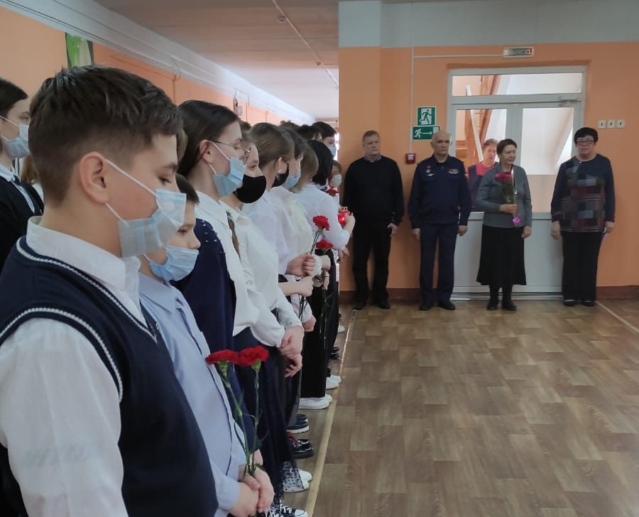 В линейке, помимо школьников, приняли участие юнармейцы, мать Олега Морозова Елена Михайловна и его сослуживцы, председатель Совета ветеранов боевых действий Ринат Гильмияров.