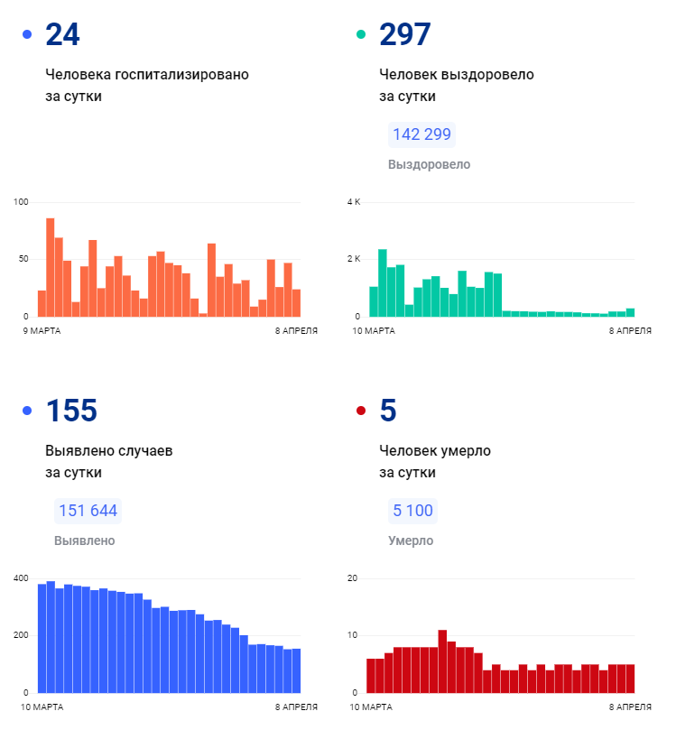 Всего с начала пандемии в регионе заболели 151 644 человека, а выздоровели — 142 299. Общее число умерших туляков к 8 апреля достигло 5 100.