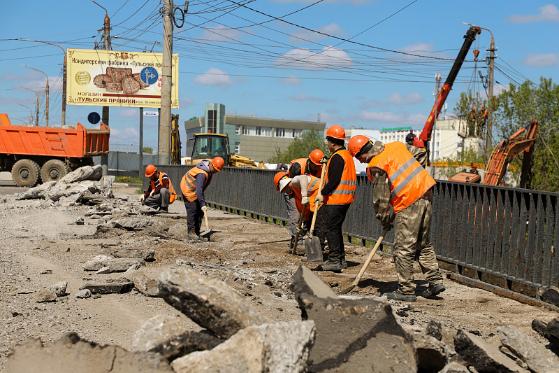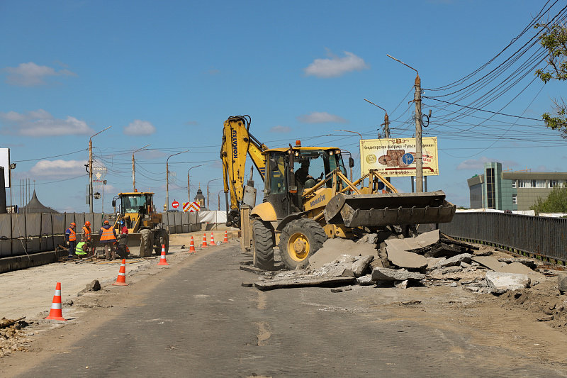 На данный момент подрядчик ведет второй этап работ. Схема движения изменена, а участок дороги перекрыли для реконструкции. Специалисты начали разборку старой части моста. Ремонт идет по графику, сбоя в поставке стройматериалов нет. Для реконструкции используют материалы отечественных производителей.
