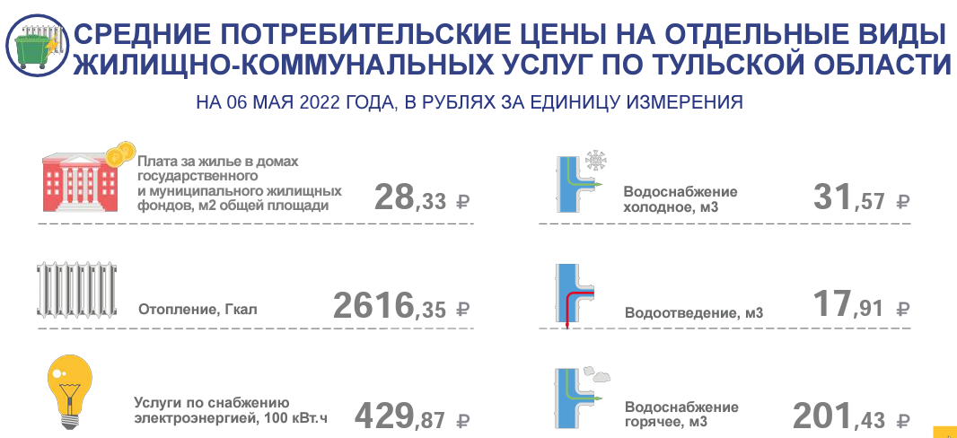 Средние потребительские цены на отдельные виды ЖКУ по Тульской области составляют: