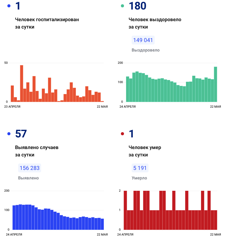 Также в регионе подтвержден еще один летальный случай среди ранее заболевших COVID-19, за все время скончался 5 191 человек. Общее число выздоровевших выросло за сутки на 180 и достигло показателя в 149 041.