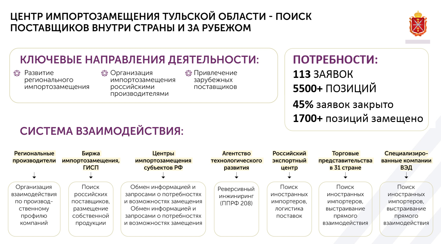 Мы помогаем другим регионам выйти непосредственно на тульские предприятия. И они, регионы, нам тоже помогают.
